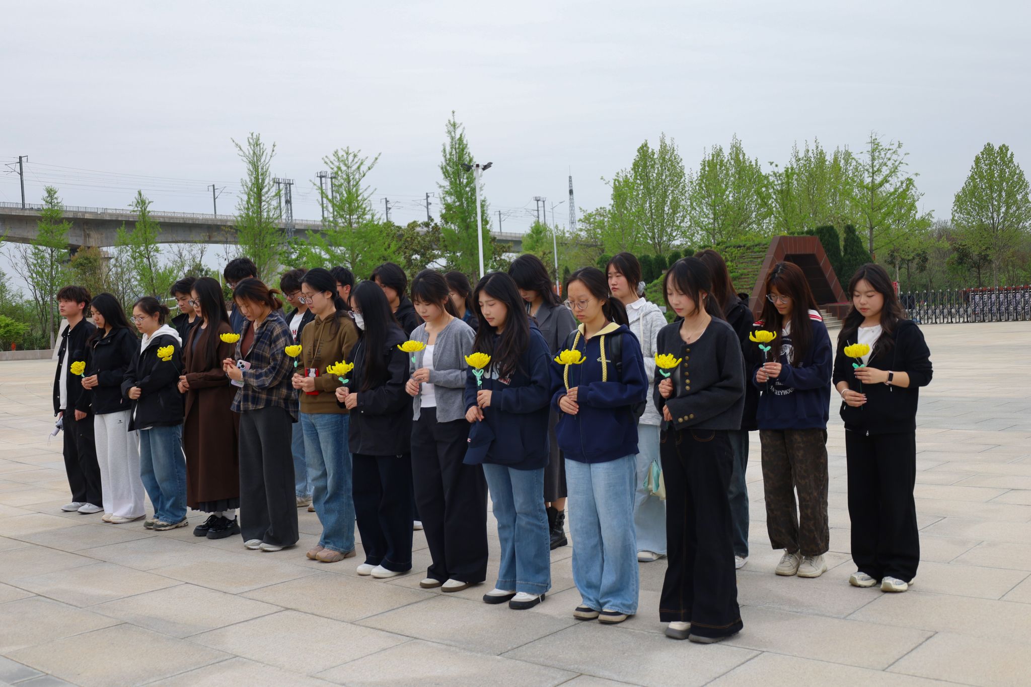 活动伊始,学生们排列整齐,在革命烈士纪念碑前肃立默哀,向为民族独立、国家富强、人民幸福献出宝贵生命的英雄烈士表达哀思与敬意。默哀结束后,活动负责人组织学生们有序献花,不同于传统鲜花敬献,此次活动中,学生们提前制作了手工花束,用朴素的方式传递对英烈的追思与缅怀。
