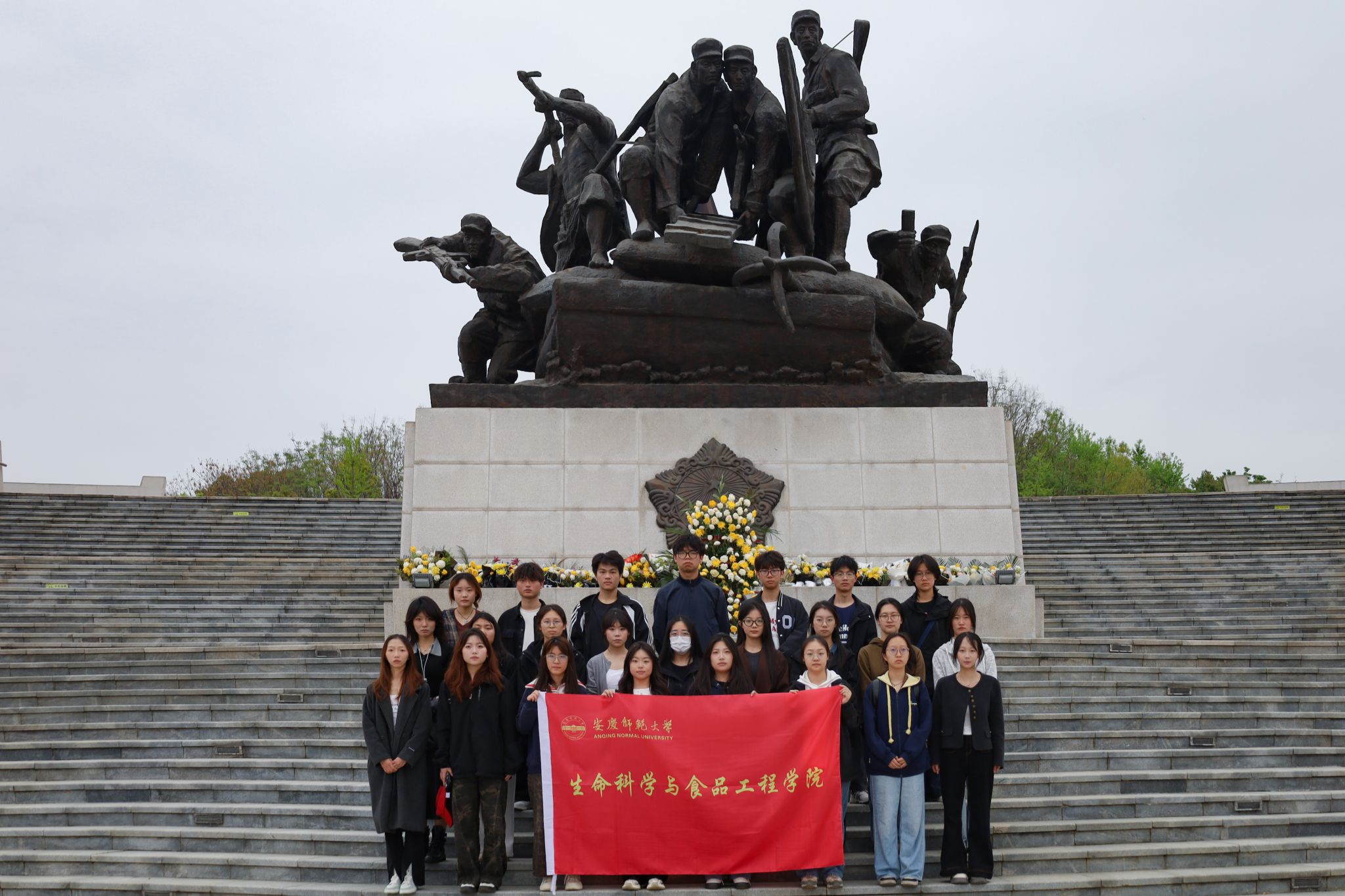 4月8日,生命科学与食品工程学院组织青马班2024级全体成员前往安庆烈士陵园开展清明节缅怀革命英烈主题活动。此次活动以“手工献花+志愿清扫”的双重形式,让青年学子在缅怀中感悟初心,在实践中传承精神。